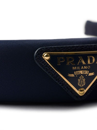 Re-Nylon headband Highlights - Navy blue - Enamel triangle logo - Grosgrain ribbon trim Composition Recycled Nylon 100%