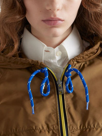 Re-Nylon jacket Highlights - Brown - Front zip fastening - Drawstring hood - Two side inset pockets - Drawstring hem Composition Recycled Polyamide 100% Washing instructions Read Manufacturer Guidelines