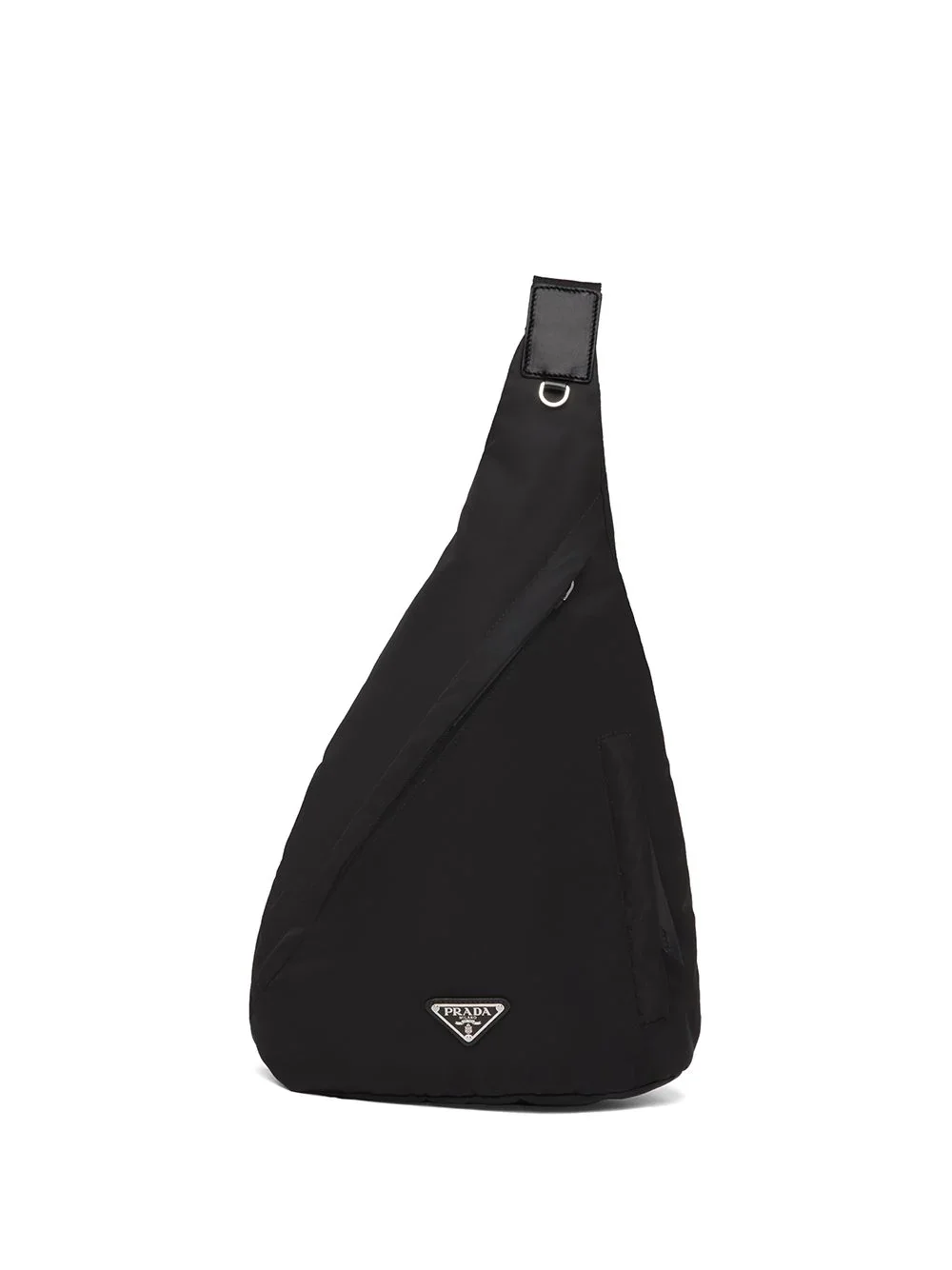 Re-Nylon logo-plaque backpack This black single-shoulder backpack is designed as part of Prada's Re-Nylon project, which aims to convert all Prada virgin nylon into regenerated nylon by the end of 2021. Showcasing the label's Italian craftsmanship it features a roomy interior and signature triangle logo plaque to the front. Highlights - Black - Recycled nylon - Logo plaque - Buckle fastening - Top zip fastening Composition Outer: Leather 100%, Recycled Nylon 100% Lining: Recycled Nylon 100% SIZE & FIT Measurement DEPTH 3.93 in(10 cm) WIDTH 10.43 in(26.5 cm) HEIGHT 14.76 in(37.5 cm)