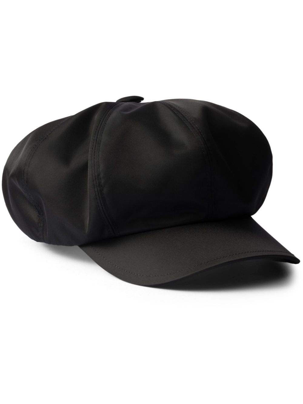Re-Nylon newsboy cap Highlights - Black - Recycled nylon - Enamel triangle logo - Curved peak - Fabric-covered button at the crown - Pull-on style - Cotton lining Composition Lining: Cotton 100% Outer: Recycled Nylon 100%