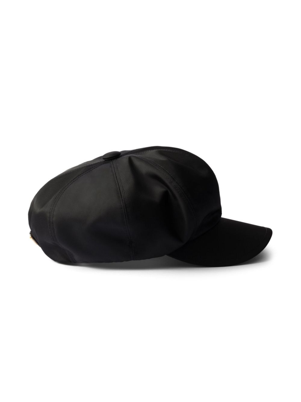 Re-Nylon newsboy cap Highlights - Black - Recycled nylon - Enamel triangle logo - Curved peak - Fabric-covered button at the crown - Pull-on style - Cotton lining - This item is made from at least 50% recycled or upcycled materials. for recycled synthetic clothing products, we highly recommend using a microfibre-catching washing bag to ensure that no microplastics that can pollute water are released in the process. - Learn more about what makes a product conscious on our conscious criteria page Composition Lining: Cotton 100% Outer: Recycled Nylon 100%