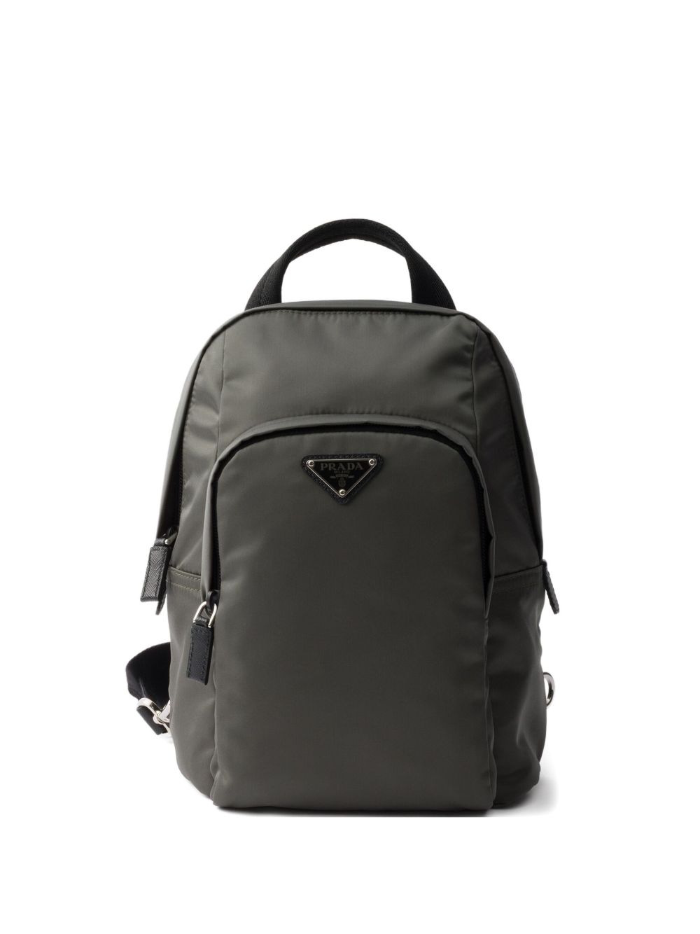 Re-Nylon padded woven backpack Highlights - Green - Woven nylon - Adjustable shoulder strap - Top handle - Enamelled triangle-logo - Zip closure Composition Recycled Polyamide 100% SIZE & FIT Measurement DEPTH 3.14 in(8 cm) HEIGHT 10.62 in(27 cm) WIDTH 7.87 in(20 cm)