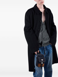 Re-Nylon triangle-logo shoulder bag Highlights - Dark blue - Suede panelling - Adjustable shoulder strap - Zip closure Composition Outer: Leather 100%, Suede 100%, Nylon 100% Lining: Nylon 100% SIZE & FIT Measurement STRAP 14.17 in(36 cm) WIDTH 4.72 in(12 cm) HEIGHT 7.08 in(18 cm) DEPTH 1.96 in(5 cm)