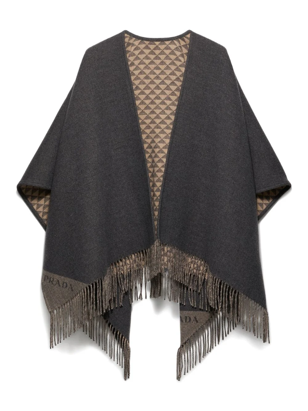 reversible fringed poncho Highlights - Grey - Jacquard logo - Jacquard knit - Fringe Composition Recycled Polyester 100%, Wool 90%, Cashmere 10%