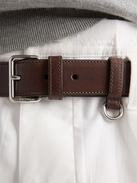 reversible leather belt Highlights - Dark brown - Silver-tone buckle - Stitched detailing - Multiple holes for adjustment - Loop keeper Composition Leather 100% SIZE & FIT Measurement WIDTH 1.29 in(3.3 cm)