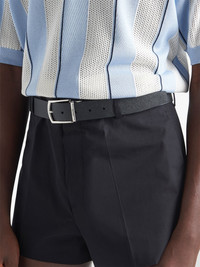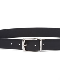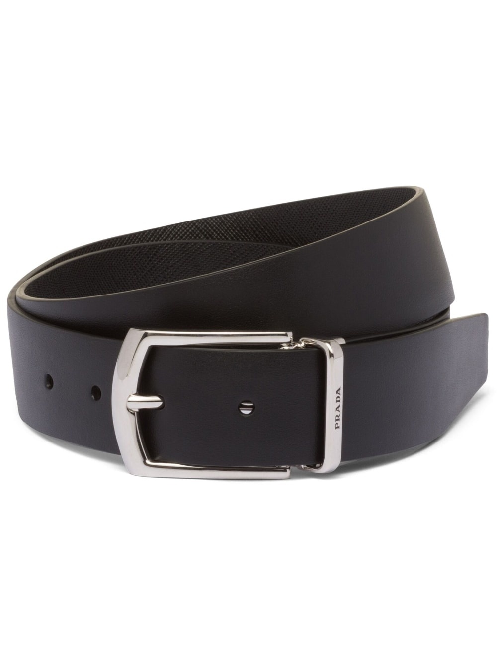 reversible leather belt Recognisable thanks to the cross-hatch pattern that is pressed into the leather's coating, Prada's Saffiano leather lends a quintessential Italian flair to this reversible belt. Highlights - Black - Saffiano leather - Silver-tone hardware - Logo lettering - Buckle fastening - Reversible Composition Leather 100%