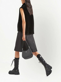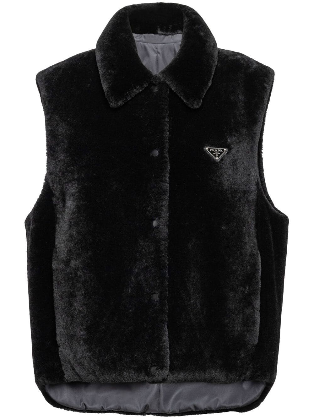 reversible shearling vest Highlights - Black - Sheepskin/shearling - Reversible - Enamel triangle logo - Pointed flat collar - Front press-stud fastening - Sleeveless - Rear curved hem - Zip-fastening chest pocket - Two side slit pockets Composition Outer: Sheep Skin/Shearling 100%