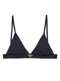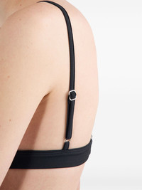 ribbed bralette bikini top Highlights - Black - Rear clasp fastening - Adjustable spaghetti straps - Enamel triangle logo - Be mindful to try on swimwear over your own garments. Composition Recycled Polyamide 92%, Elastane 8%