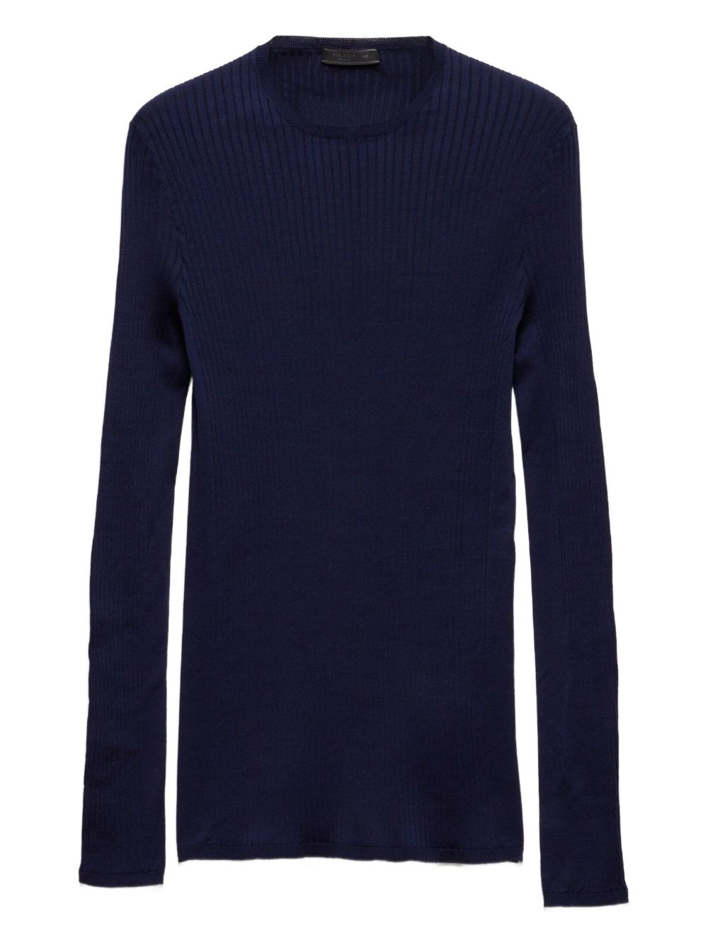 ribbed cotton jumper Highlights - Navy blue - Crew neck - Long sleeves - Knitted construction - Straight hem Composition Cotton 100%