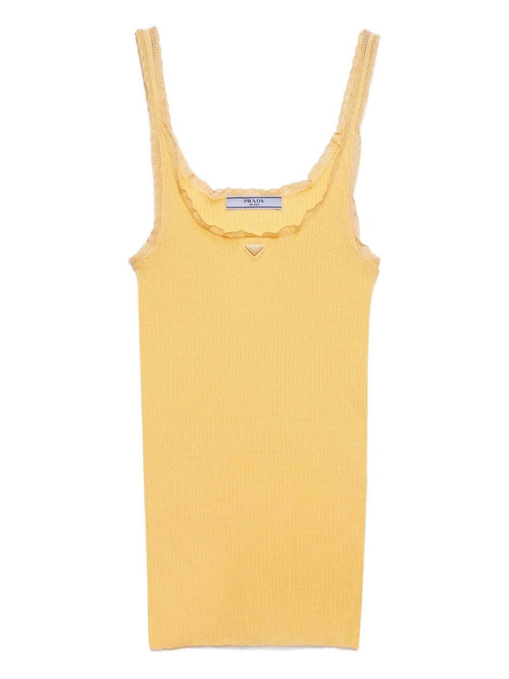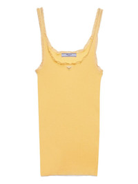ribbed cotton top Highlights - Yellow - Triangle logo - Lace trim - Scoop neck - Sleeveless Composition Cotton 100%