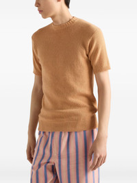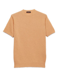 ribbed-knit short-sleeve T-shirt Highlights - Powder beige - Ribbed knit - Short sleeves - Crew neck - Triangle logo - Cashmere Composition Cashmere 100% Washing instructions Read Manufacturer Guidelines