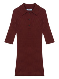 ribbed polo top Highlights - Brick red - Ribbed knit - Front button placket - Polo collar - Short sleeves - Straight hem Composition Cotton 100% Washing instructions Read Manufacturer Guidelines