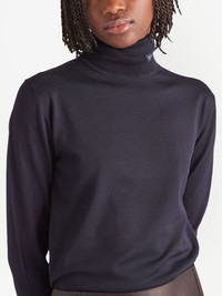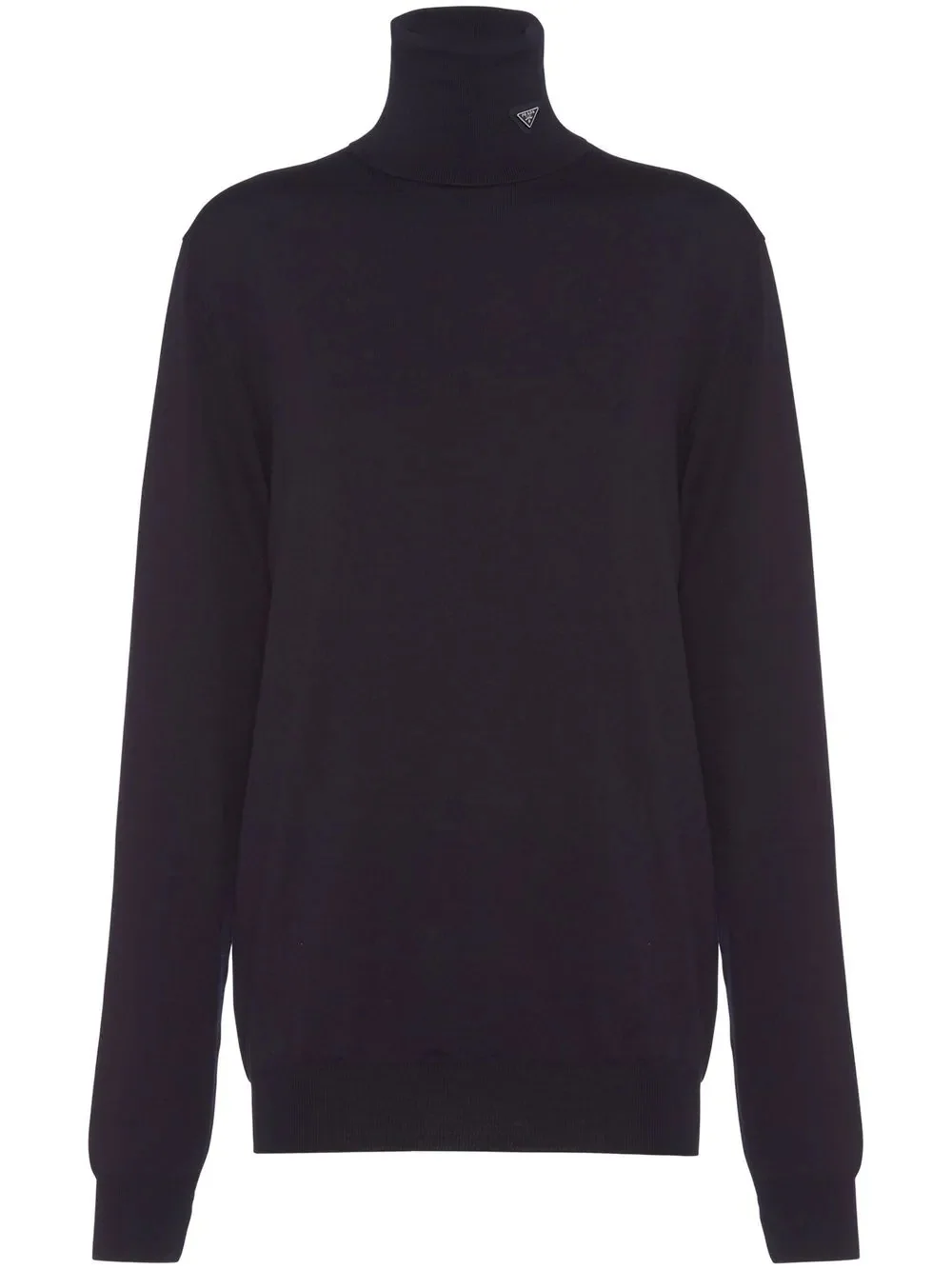 roll-neck wool jumper Prada's iconic triangle logo plaque is a brand mainstay that is found across collections of ready-to-wear and accessories. The motif is also found on more refined pieces like this wool knitted jumper. Composition Wool 100%