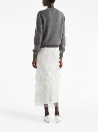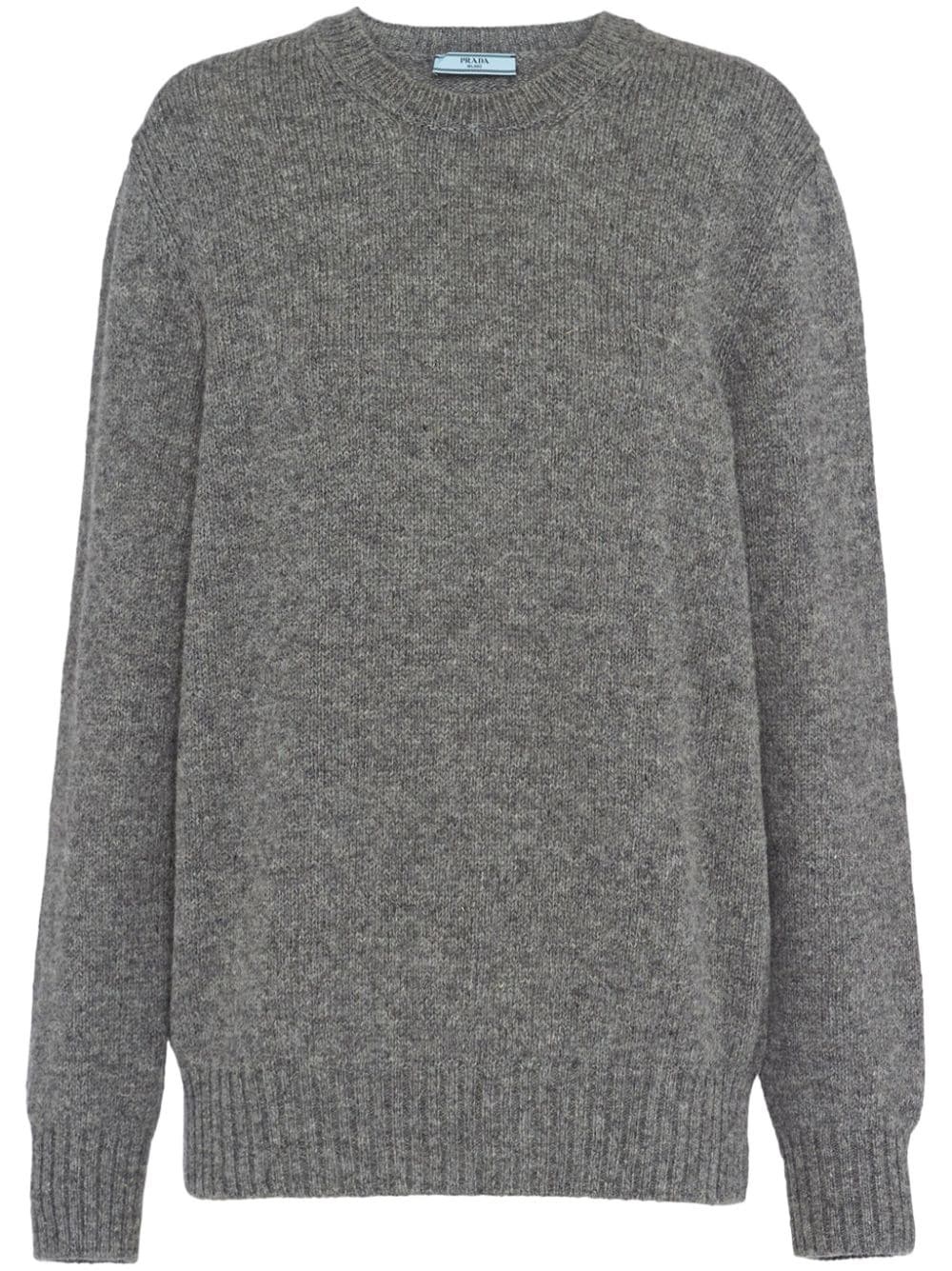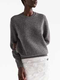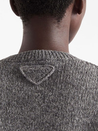 triangle-logo wool jumper Prada's triangular logo patch was first introduced in 1970. Instantly recognisable as the brand this detail takes on a contemporary iteration as a minimalist geometric shape at the back of this long-sleeve jumper. Highlights - Grey - Round neck - Long sleeves - Knitted construction Composition Wool 100%, Cashmere 100%