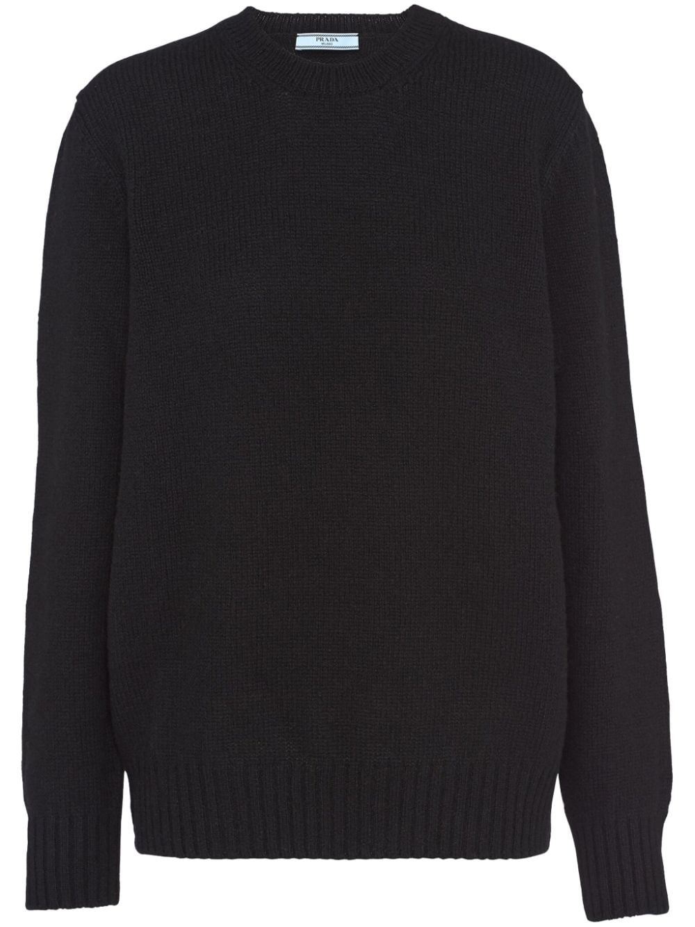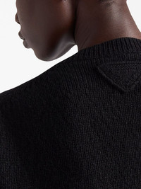 triangle-logo wool jumper Prada's triangular logo patch was first introduced in 1970. Instantly recognisable as the brand this detail takes on a contemporary iteration as a minimalist geometric shape at the back of this long-sleeve jumper. Highlights - Black - Wool-cashmere blend - Round neck - Long sleeves Composition Cashmere 100%, Wool 100%