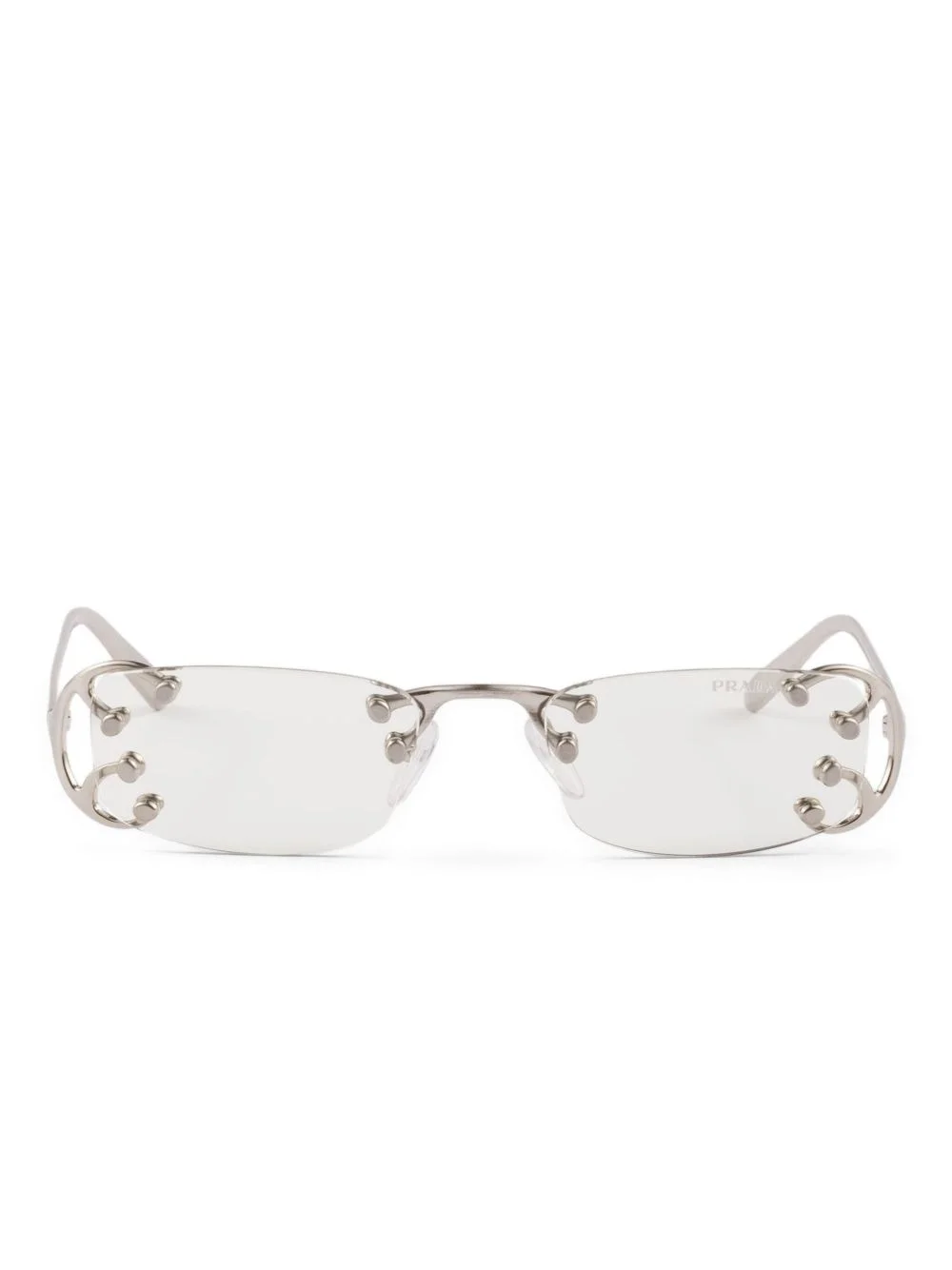 Runway embellished rimless sunglasses Highlights - Silver-tone - Rectangle frame - Art nouveau style elements - Adjustable nose pads - Uva and uvb protection - Blue light lenses without prescription - Frame not compatible with graduated lenses - These glasses come with a protective case. Composition Metal 100% SIZE & FIT Measurement Lens Diameter 2.04 in(5.2 cm) Bridge Width 0.78 in(2 cm) Arm Length 5.31 in(13.5 cm)