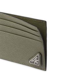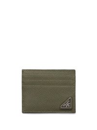 Saffiano leather card holder Highlights - Olive green - Saffiano leather - Enamel triangle logo - Card slots - Internal slip pocket - Debossed internal logo Composition Outer: Leather 100%