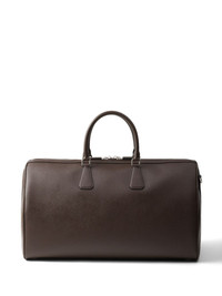 Saffiano leather duffle bag Highlights - Brown - Calf leather - Top zip fastening - Enamel triangle logo - Logo tag - Two top handles - Adjustable detachable shoulder strap - Main compartment - Internal zip-fastening pocket - Metal feet Composition Outer: Calf Leather 100% SIZE & FIT Measurement DEPTH 9.84 in(25 cm) HEIGHT 10.82 in(27.5 cm) WIDTH 19.68 in(50 cm)