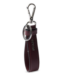 saffiano leather keychain Highlights - Burgundy - Leather - Snap-hook - Ring - Triangle logo - Metal lettering logo Composition Outer: Calf Leather 100%, Metal 100% SIZE & FIT Measurement LENGTH 3.93 in(10 cm) WIDTH 0.78 in(2 cm)