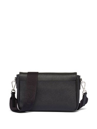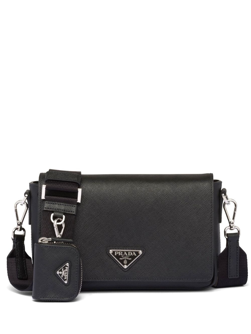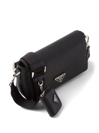 Saffiano leather shoulder bag A testament to the excellence of Italian craftsmanship, Prada's iconic Saffiano leather is deployed in the construction of this shoulder bag. A removable pouch and silver-tone enamelled metal triangle logo embellish the front. Highlights - Black - Leather - Enamel triangle logo - Internal logo plaque - Foldover top with magnetic fastening - Adjustable detachable shoulder strap - Main compartment - Internal zip-fastening pocket - Removable pouch Composition Outer: Leather 100% Lining: Recycled Nylon 100% SIZE & FIT Measurement DEPTH 1.96 in(5 cm) HEIGHT 5.7 in(14.5 cm) WIDTH 8.66 in(22 cm)