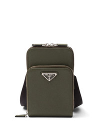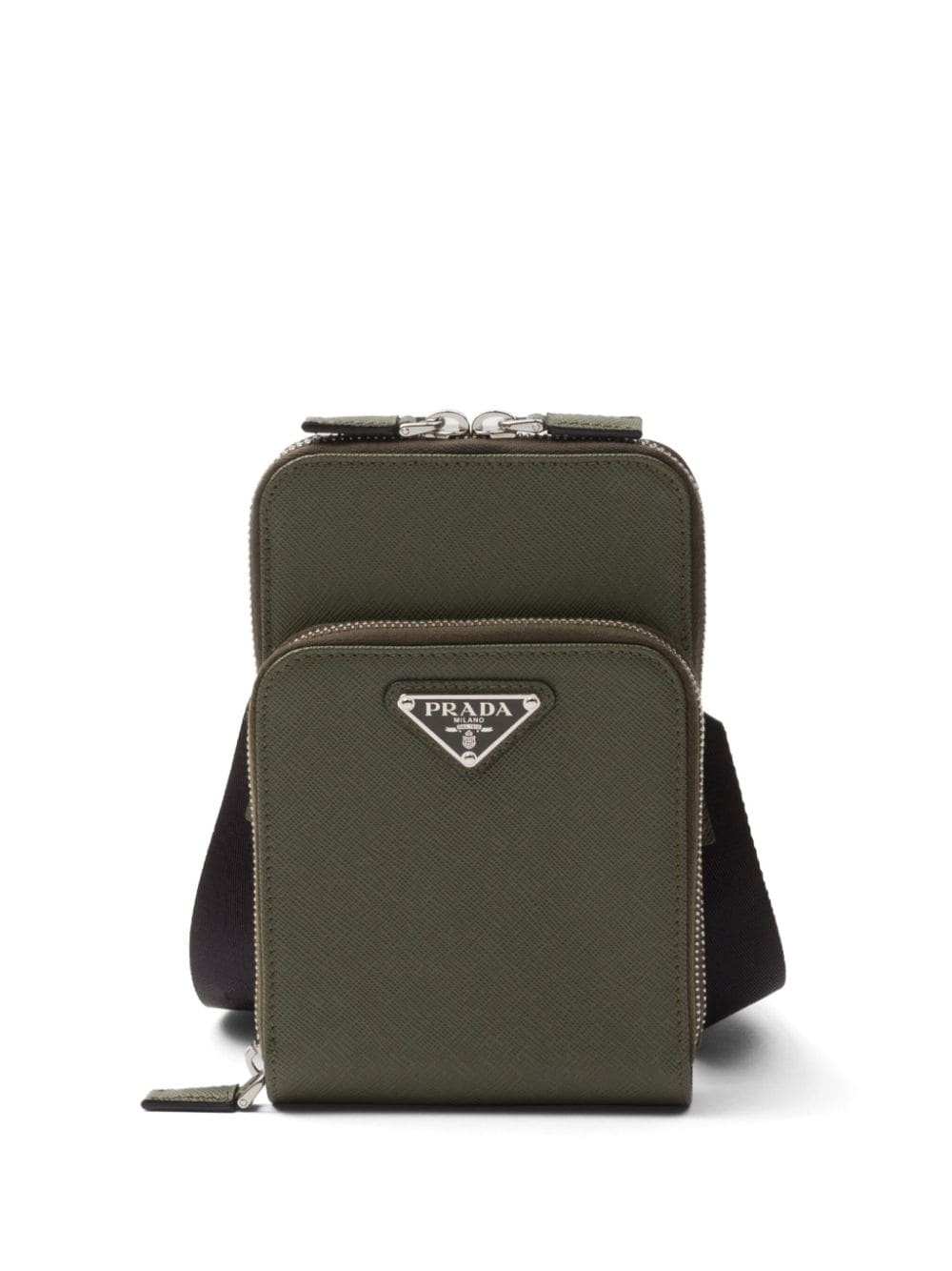 Saffiano leather smartphone case Highlights - Dark green - Saffiano leather - Enamel triangle logo - Adjustable shoulder strap - Zip-fastening pocket - All-around zip fastening Composition Outer: Calf Leather 100% SIZE & FIT Measurement WIDTH 4.52 in(11.5 cm) HEIGHT 7.08 in(18 cm)