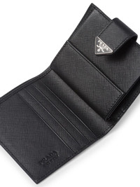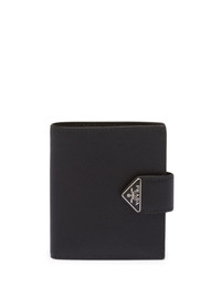 saffiano logo-plaque wallet black leather Saffiano leather logo plaque foldover top with press-stud fastening internal card slots note compartment Composition Outer: Leather 100%
