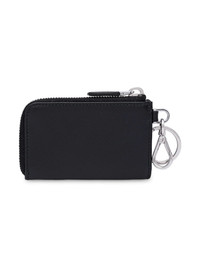 saffiano pouch key trick Black leather, metal and enamel saffiano pouch key trick from Prada featuring a textured leather detail, a silver-tone logo plaque, enamel details, an all around zip fastening and a clip fastening. Composition Outer: Calf Leather 100%, Enamel 100%, Metal 100% SIZE & FIT Measurement WIDTH 2.55 in(6.5 cm) LENGTH 4.13 in(10.5 cm)