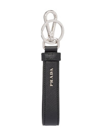 triangle-logo leather keychain Highlights - Prone to losing your keys? keep them safely around your wrist thanks to this black saffiano leather strap keyring from prada. the logo plaque is detachable and replaceable by metal lettering as a customisation detail. featuring a wrist strap, a lobster clasp closure, silver-tone hardware and a logo plaque. Composition Calf Leather 100% SIZE & FIT Measurement LENGTH 3.93 in(10 cm) WIDTH 0.78 in(2 cm)