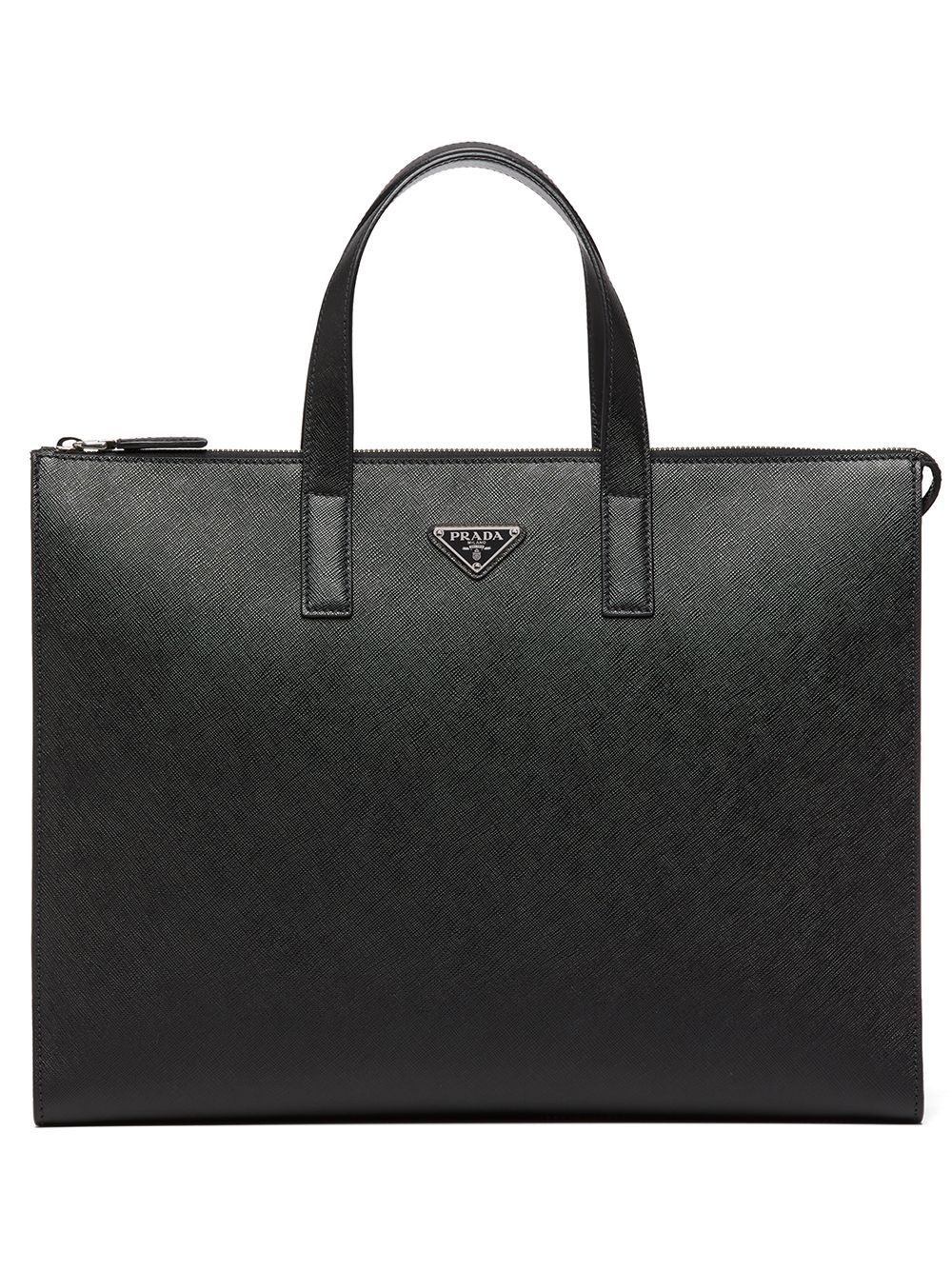 Saffiano tote bag A great day starts with a great bag. So kick off your morning the right way with a breakfast bar, favourite novel and beloved phone inside Prada's Saffiano tote bag. Don't worry about a thing today, you've got it in the bag. Composition Outer: Leather 100% Lining: Nylon 100%