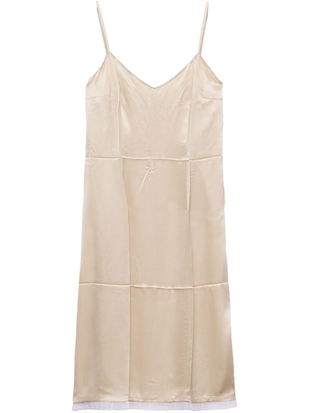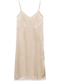 satin crepe midi dress Highlights - Light beige - Slip-on style - V-neck - Spaghetti straps - Ruffle hem Composition Silk 100%