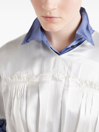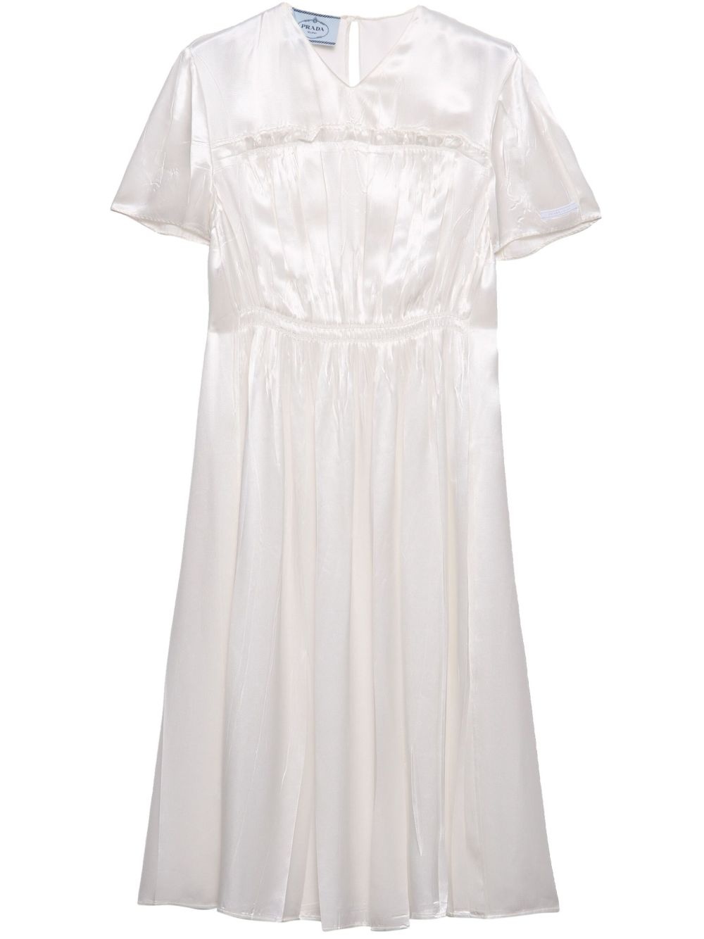 satin midi dress Highlights - White - Rear button fastening - Ruffled detailing - Pleat detailing - V-neck Composition Acetate 54%, Viscose 46%