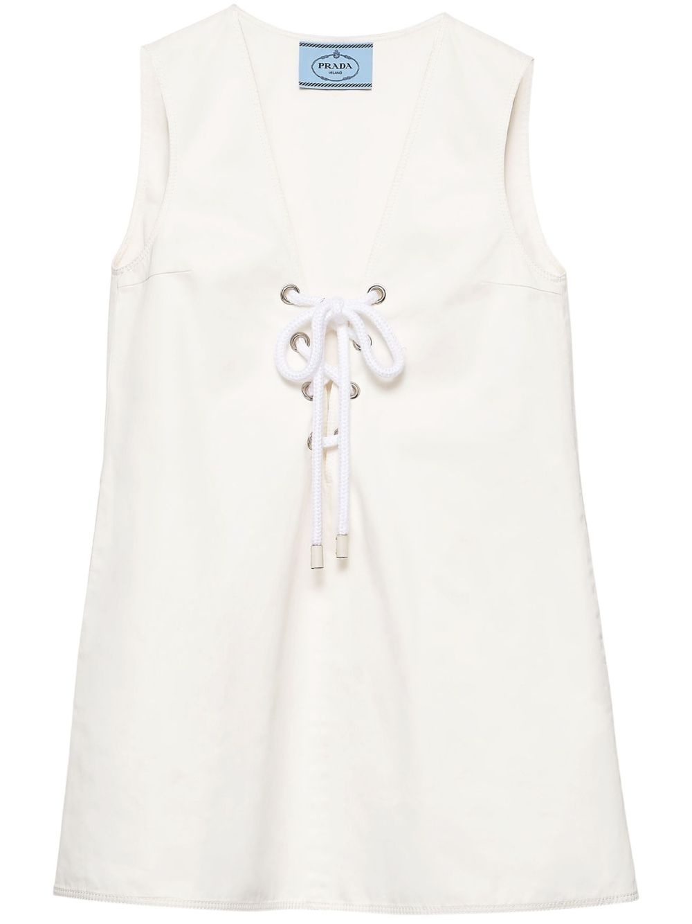 satin mini dress Highlights - White - Lace-up detailing - V-neck - Sleeveless Composition Fabric 100%