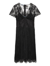 scalloped lace mini dress Highlights - Black - Scalloped v-neck - Short-sleeves - Slip - Scalloped hem - Hidden snap-fastening - Transparent-style Composition Viscose 100% Washing instructions Read Manufacturer Guidelines