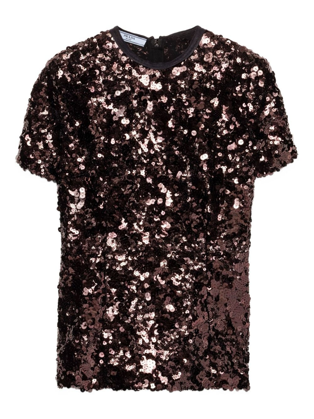 sequin-embellished short-sleeve top Highlights - Brown - Sequin embellishment - Short sleeves - Crew neck - Zip fastening - Straight hem Composition Polyamide 100%, Polyester 100% Washing instructions Read Manufacturer Guidelines
