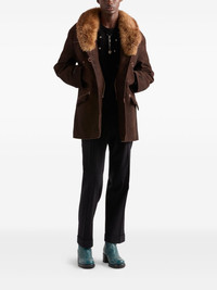 shearling-collar suede jacket Highlights - Brown - Shearling collar - Double-breasted button closure - Leather-trimmed pockets - Suede outer - Back leather triangle logo Composition Suede 100%, Sheepskin 100% Washing instructions Read Manufacturer Guidelines