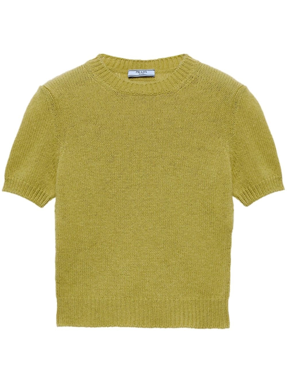 fine-knit sweater Highlights - Avocado green - Cashmere - Fine knit - Triangle logo - Crew neck - Short sleeves - Straight hem - Ribbed trim - Straight hem Composition Cashmere 100%