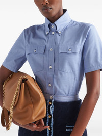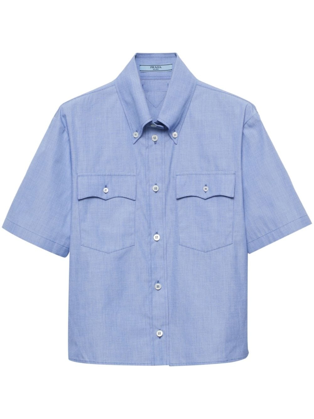 short-sleeve cotton shirt Highlights - Cornflower blue - Cotton - Triangle logo - Button-down collar - Front button placket - Short sleeves - Two chest flap pockets - Straight hem Composition Cotton 100% Washing instructions Read Manufacturer Guidelines