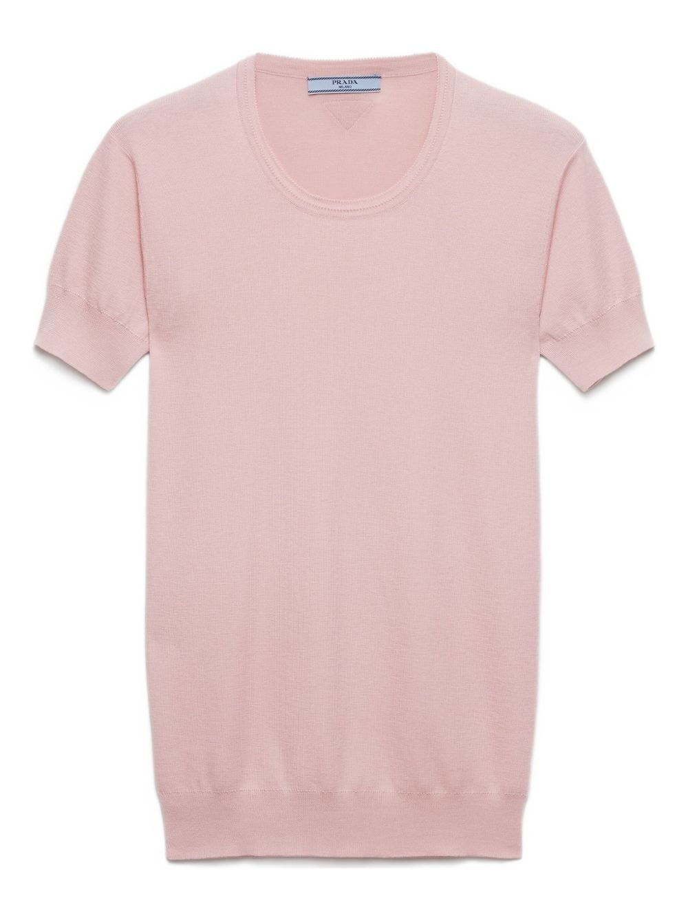 short-sleeve ribbed sweater Highlights - Pink - Short sleeves - Ribbed sleeve trim - Ribbed hem - Crew neck - Rear triangle logo Composition Cotton 50%, Silk 50% Washing instructions Read Manufacturer Guidelines