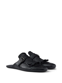Shuffle fringed leather mules Highlights - Black - Fringe detailing - Perforated accents - Buckle-strap detail - Slip-on design Composition Lining: Calf Leather 100% Sole: Rubber 100% Outer: CALFSKIN 100%