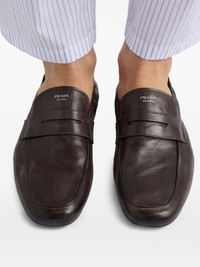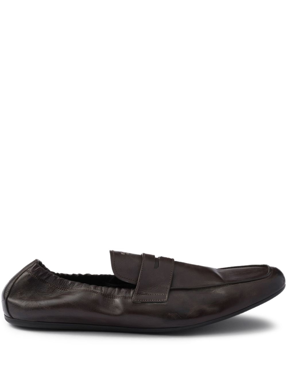 Shuffle leather loafers Highlights - Brown - Slip-on style - Elasticated trim - Logo stamp to the front - Penny slot Composition Outer: Leather 100% Sole: Rubber 100% Lining: Calf Leather 100%