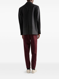 side-stripe trousers Highlights - Burgundy - Side stripes - Ribbed waistband - Drawstring fastening - Zip pockets Composition Polyester 98%, Elastane 2% Washing instructions Read Manufacturer Guidelines