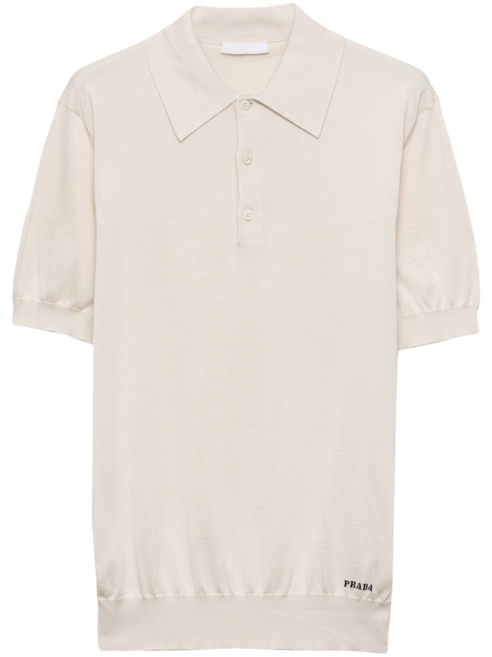 silk polo shirt Highlights - Light beige - Silk - Melange effect - Front button placket - Polo collar - Short sleeves - Ribbed cuffs and hem - Jacquard logo motif - Straight hem Composition Silk 100%