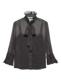 silk shirt Highlights - Black - Front button fastening - Ruffled trim - Gathered tie neck - Long sleeves Composition Silk 100%