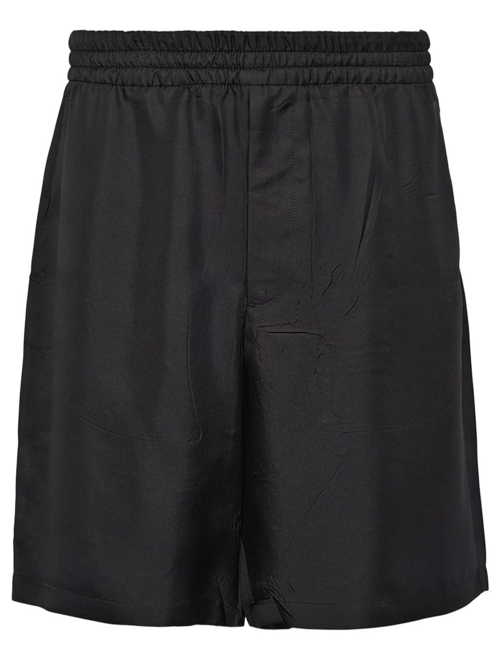 silk track shorts Highlights - Black - Silk - Zip fly fastening - Two side slash pockets - Rear patch pocket - Logo print to the rear - Straight hem Composition Silk 100%