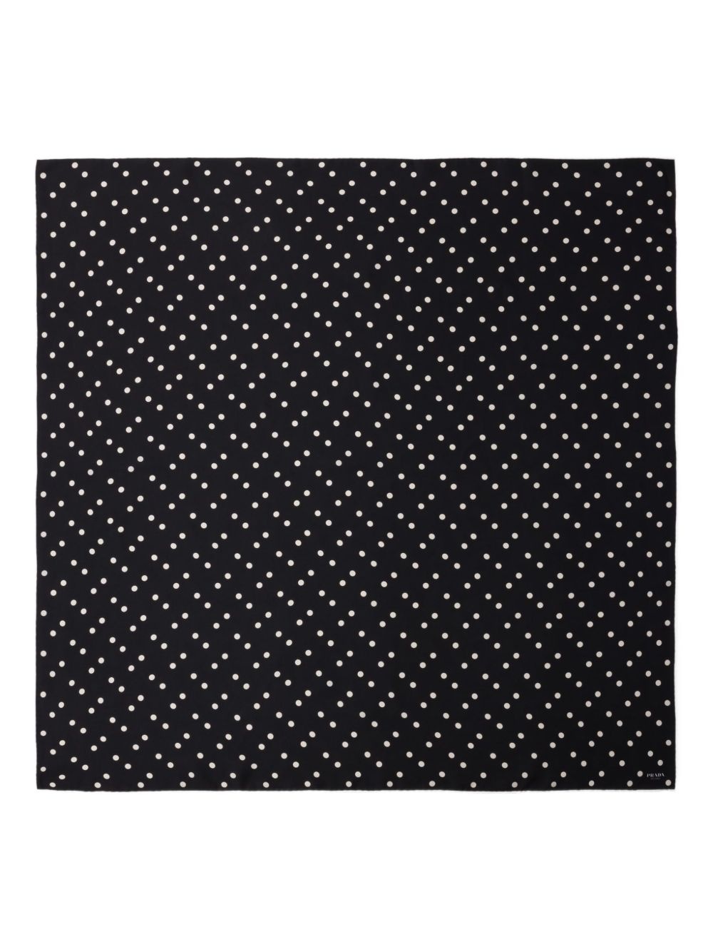 silk twill scarf Highlights - Black - Polka dot print - Square shape - Enamel triangle logo Composition Silk 100% SIZE & FIT Measurement LENGTH 25.59 in(65 cm) WIDTH 25.59 in(65 cm)