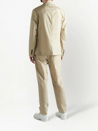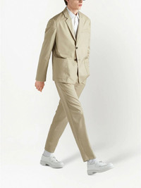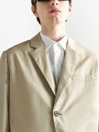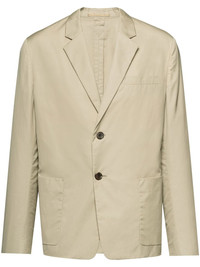single-breasted cotton blazer Offering a timeless design, this Prada blazer is cut to a classic single-breasted silhouette. A light beige hue adds a lively touch to the refined piece. Highlights - Beige - Cotton - Notched lapels - Front button fastening - Chest welt pocket - Two side patch pockets - Long sleeves - Buttoned cuffs - Straight hem Composition Cotton 100%