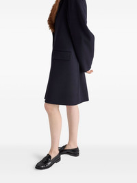 single-breasted cloth coat Highlights - Notched lapels - Shearling collar - Jacquard knit triangle logo - Menswear fit - Lined - Front button closure - Straight sleeves - Flapped patch pockets - The model is 180 cm tall and wears a size 38 Composition Outer: Sheep Skin/Shearling 100%, Virgin Wool 90%, Cashmere 10% SIZE & FIT Measurement BUST 31.65 in(80.4 cm) HIPS 33.85 in(86 cm) WAIST 23.22 in(59 cm) Washing instructions Read Manufacturer Guidelines