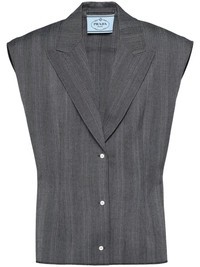 single-breasted pinstripe vest Highlights - Grey - Wool - Peak lapels - Front button fastening - Shoulder pads - Sleeveless - Straight hem Composition Wool 100% Washing instructions Read Manufacturer Guidelines