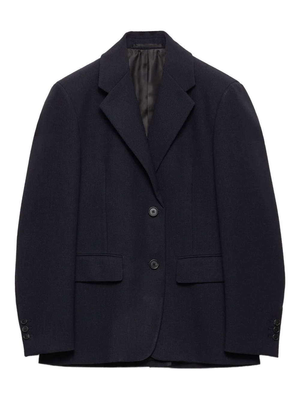 single-breasted rush stitch jacket Highlights - Single-breasted design - Rush stitch - Straight cut - Soft fabric - Notched lapels - Flap pockets - Wool triangle logo - Lined - Front button closure - Straight three-button sleeves - Back vent Composition Viscose 100% SIZE & FIT Measurement BUST 33.22 in(84.4 cm) WAIST 24.72 in(62.8 cm) HIPS 35.35 in(89.8 cm) Washing instructions Read Manufacturer Guidelines