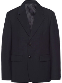 single-breasted wool blazer Prada's most recognisable house code - the iconic enamel Triangle logo - sees a contemporary reinvention for SS22, appearing throughout the collection with a stripped-down minimalist design. It adorns the back of this wool blazer, elevating the refined tailored construction of the piece with an understated flair. Composition Wool 100%